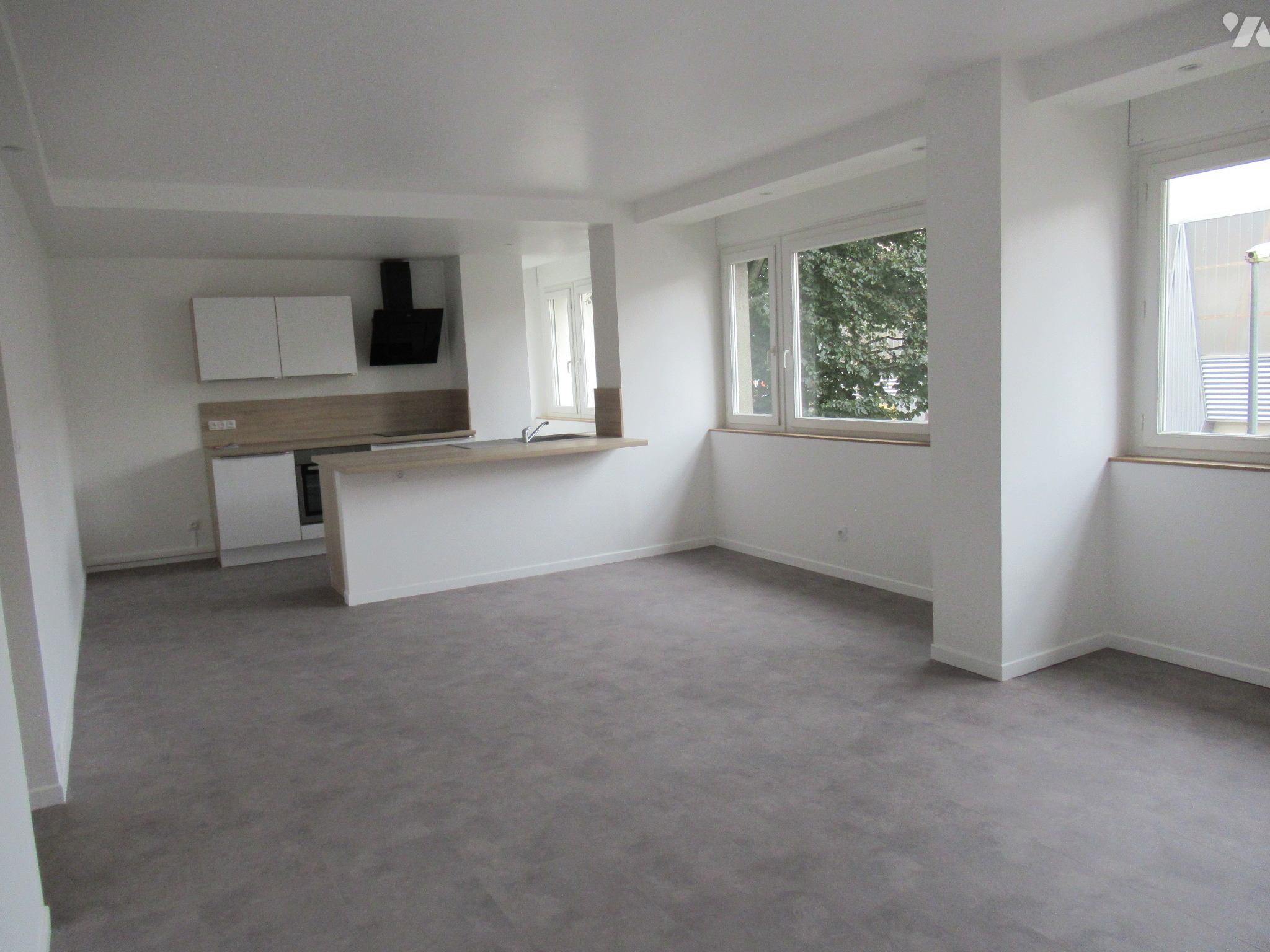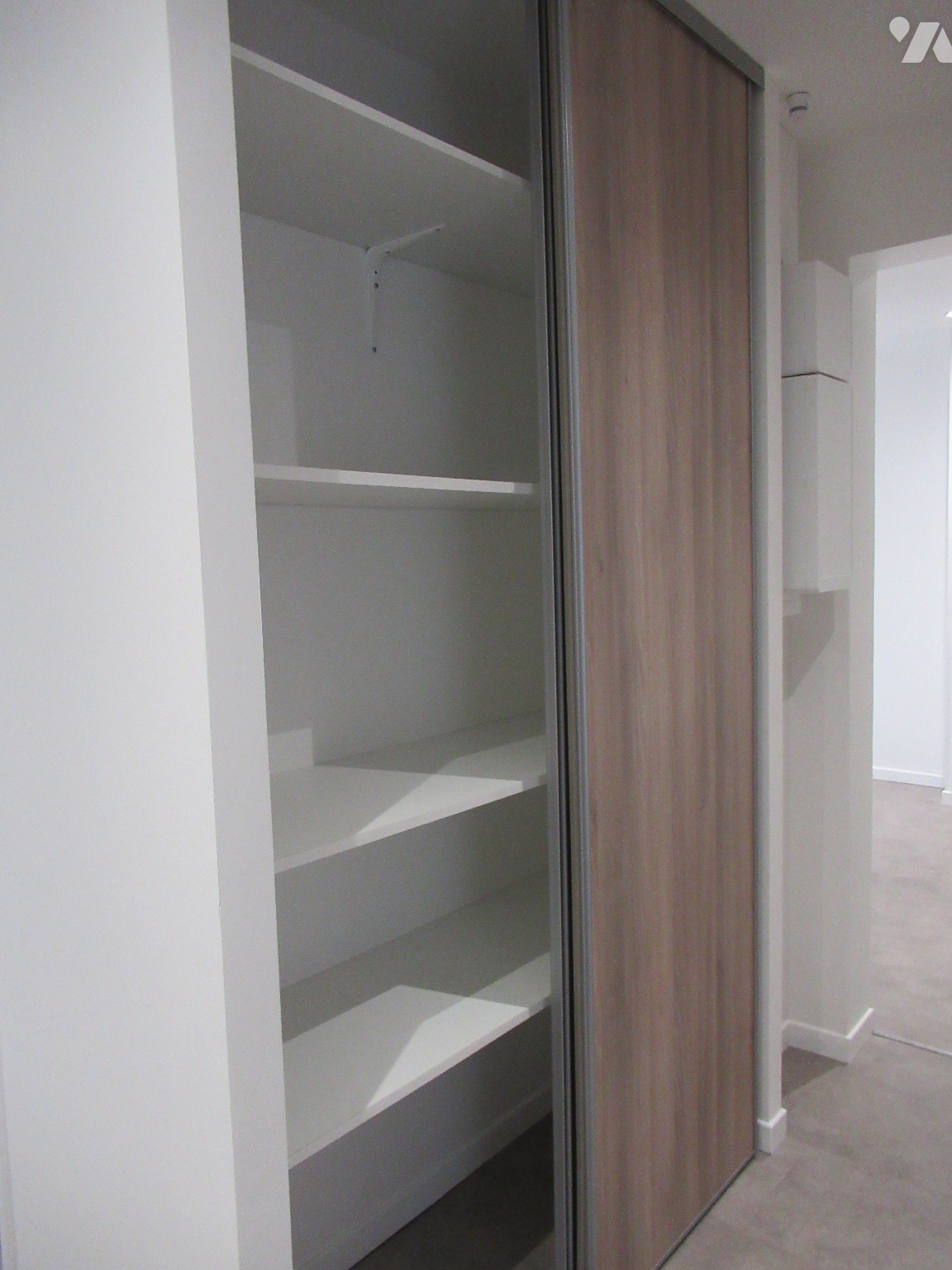 Libre le 10/01/2026 - F4 de 103 m² - comprenant : une entrée, un dégagement, un séjour avec coin cuisine aménagé équipé de plaque de cuisson, four, hotte, un dégagement, des rangements aménagés, un WC avec lave mains, une salle de bain aménagée avec meuble vasque double, baignoire, un radiateur sèche-serviette, un rangement où se trouve le cumulus, trois chambres dont une avec dressing aménagé.